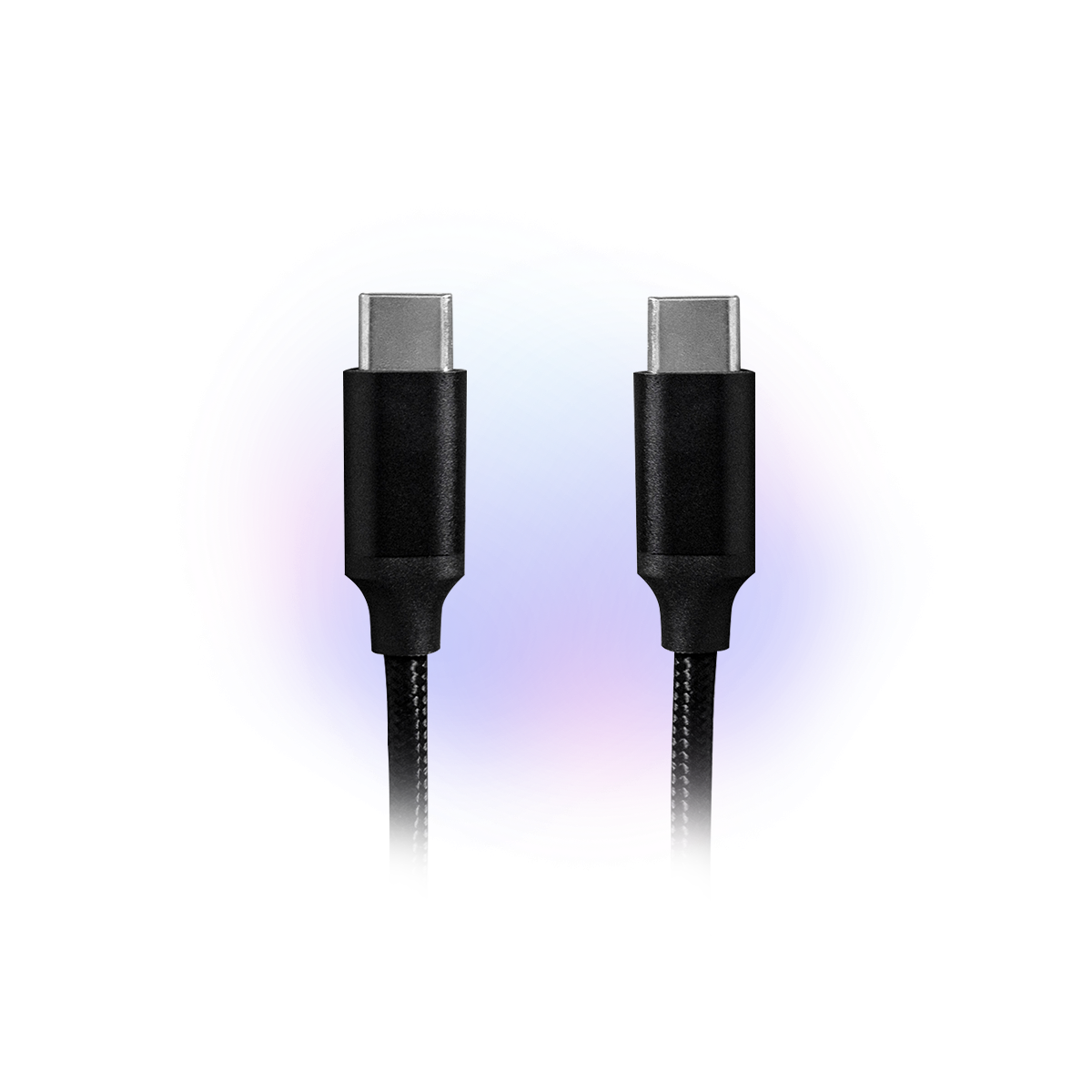 The Dygma Raise comes with two 20 cm USB-C to USB-C cables, which connect each half of the keyboard to the neuron, and a 1.5 m USB-A to USB-C, which connects the Neuron to the computer. We also provide one extra 50 cm USB-C to USB-C, perfect for those who want to set the Raise wider apart.