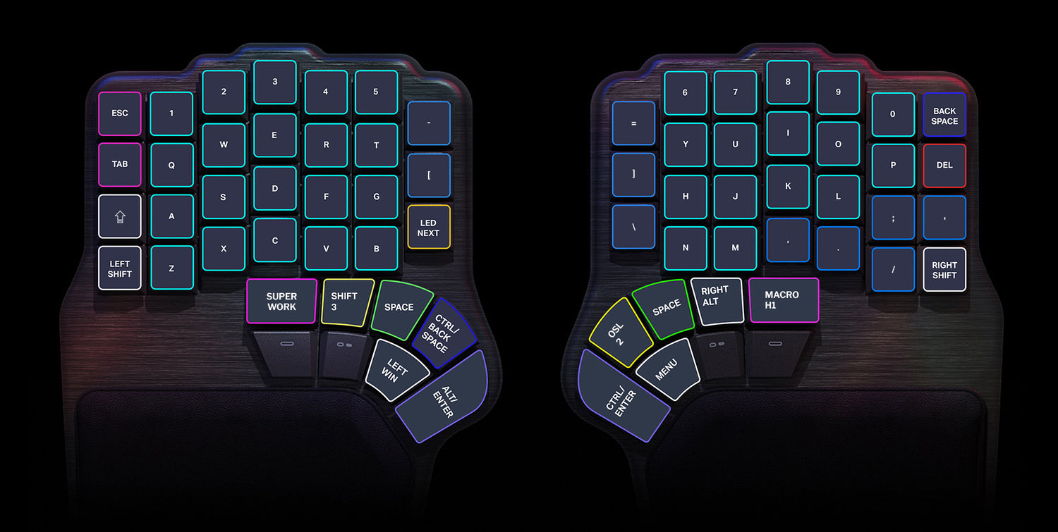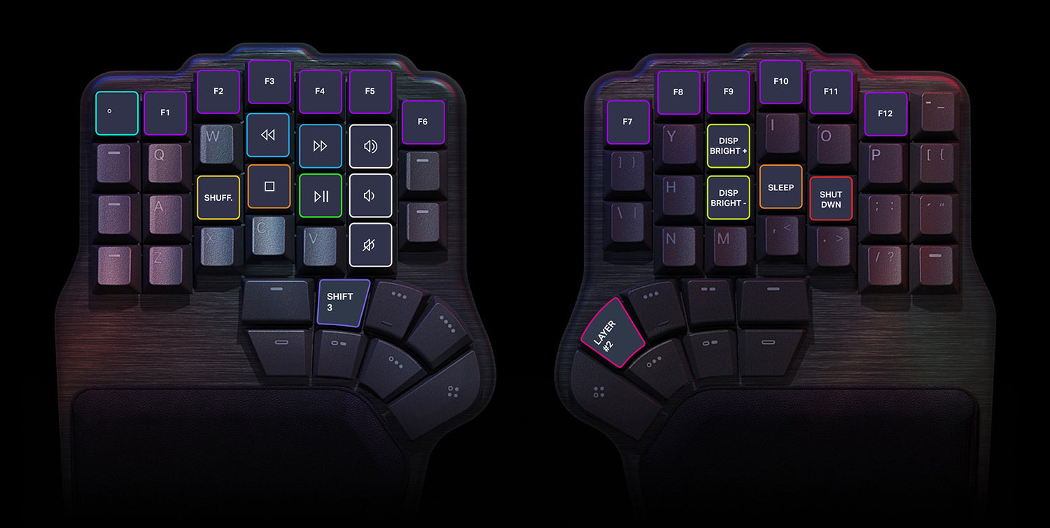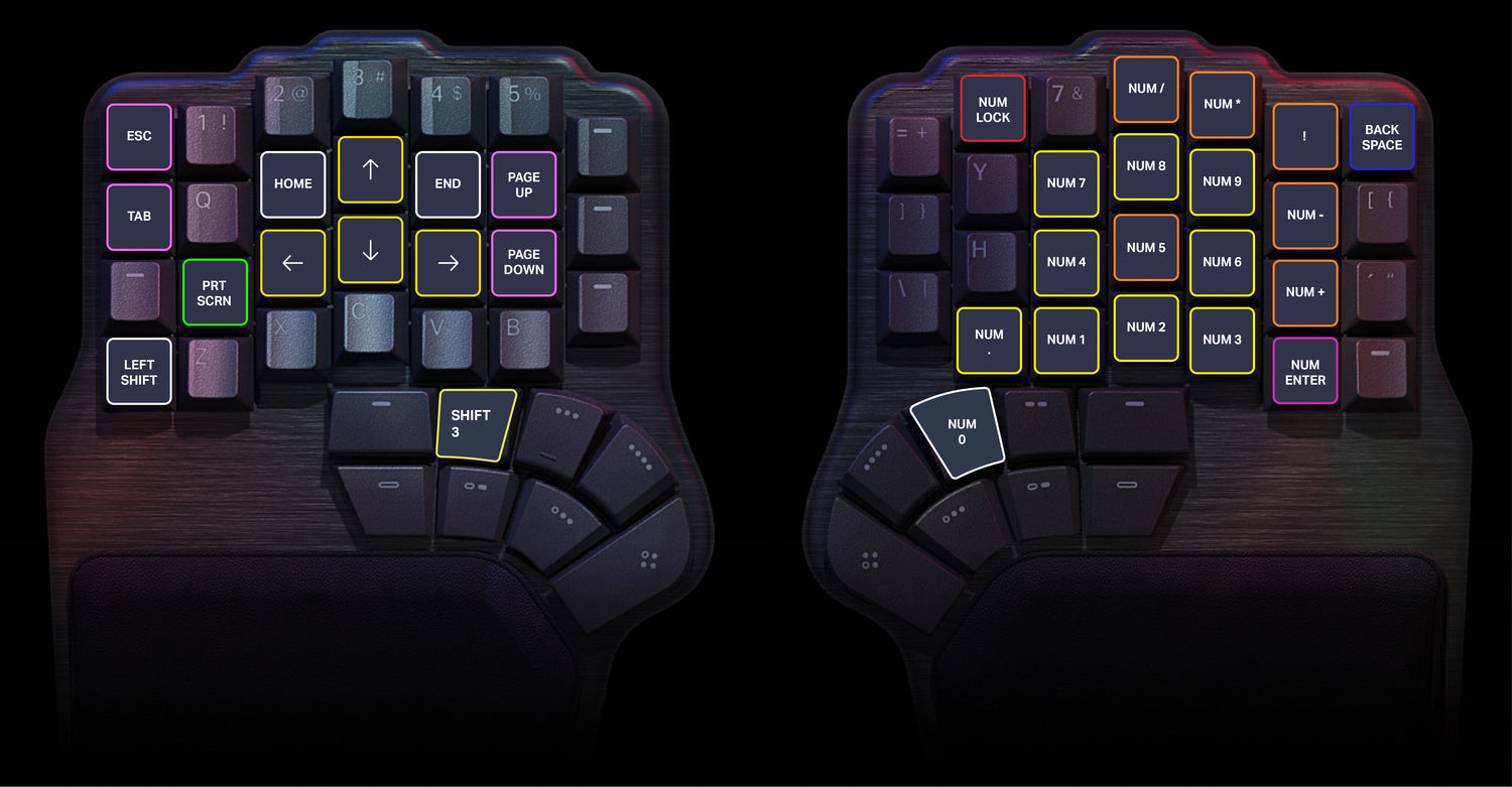 Every Defy comes with preinstalled layers that include all the other keys present on larger keyboards: the arrows, the F keys, the number pad, and the media keys... you name it.