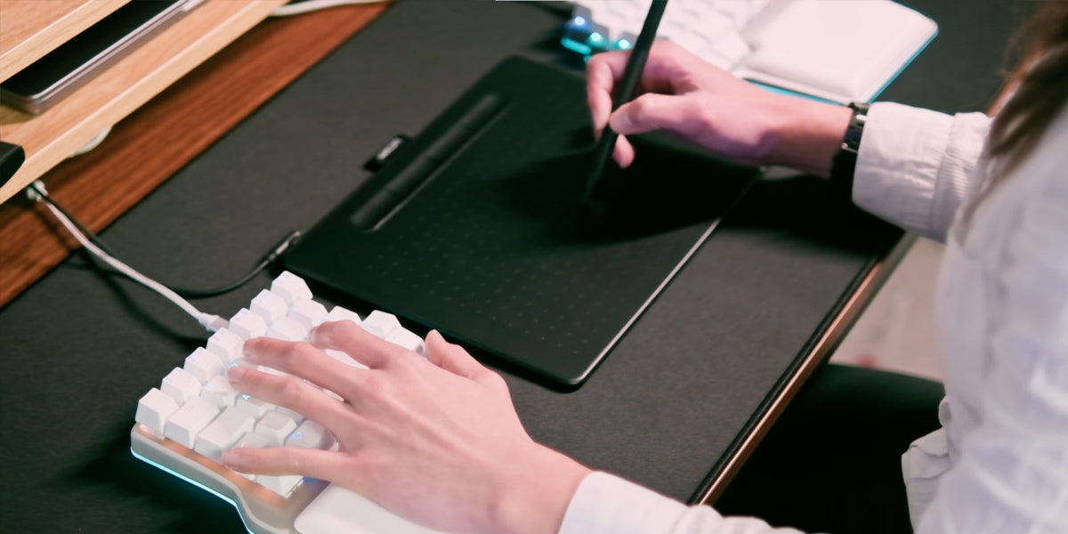 What if you only want to use one half? Here’s a simple tip : position your mouse, trackpad, or drawing tablet like you would place the missing half of the keyboard.