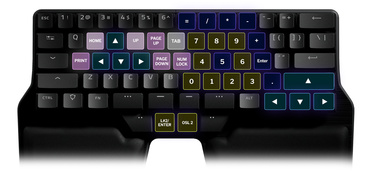 Every Raise 2 has two preinstalled layers with all the other keys present on larger keyboards: the arrows, the F keys, the number pad, and the media keys... you name it.