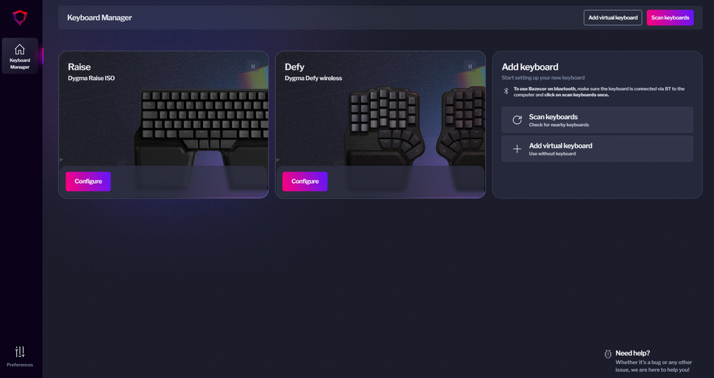 We are very close to the stable release of Bazecor 1.4, which allows you to edit your keyboard via BT and has a more intuitive preferences menu.