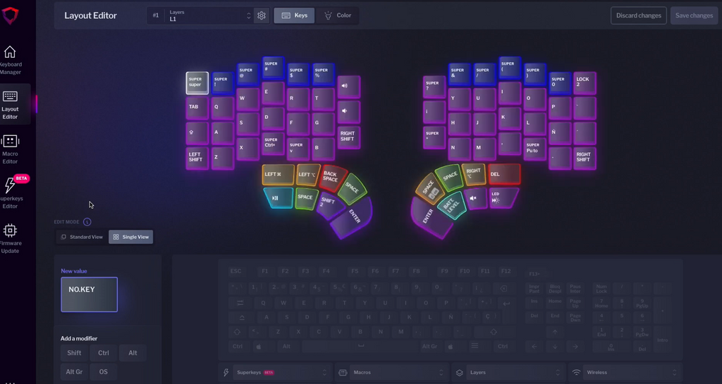 If you have more than one Dygma Keyboard—lucky you😉 this keyboard manager is also great for seamlessly switching between them. And if you don't have a Dygma Keyboard yet, don't worry. You can play around with virtual versions of our keyboards to get a feel for the features and prepare your layers for when you get one. Once you get it, you can load that configuration into your keyboard, and you'll be up and running in seconds.
