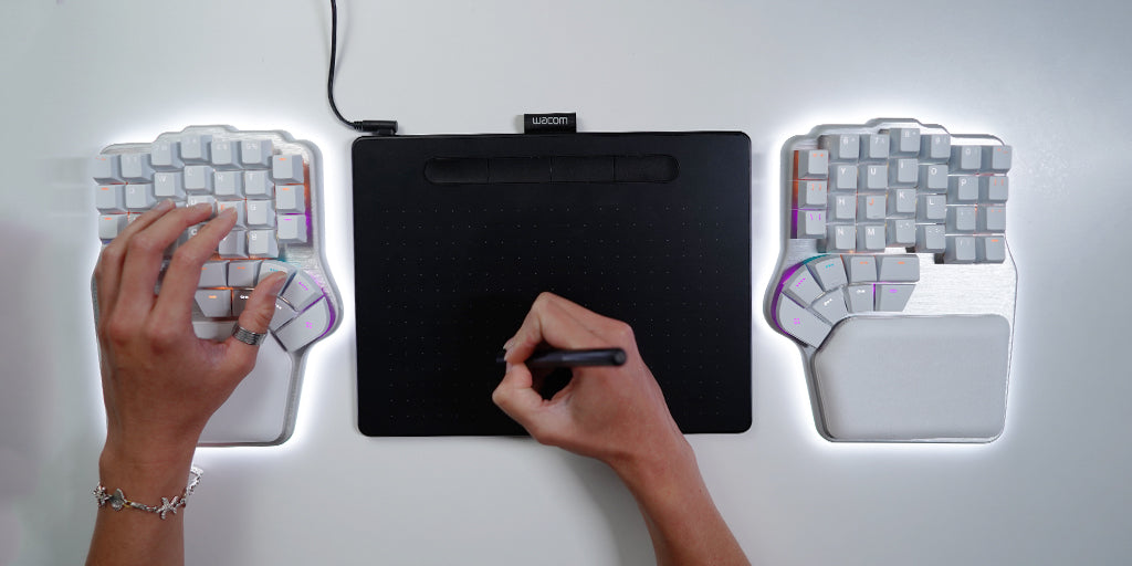 What if you only want to use one half? Here’s a simple tip : position your mouse, trackpad, or drawing tablet like you would place the missing half of the keyboard.